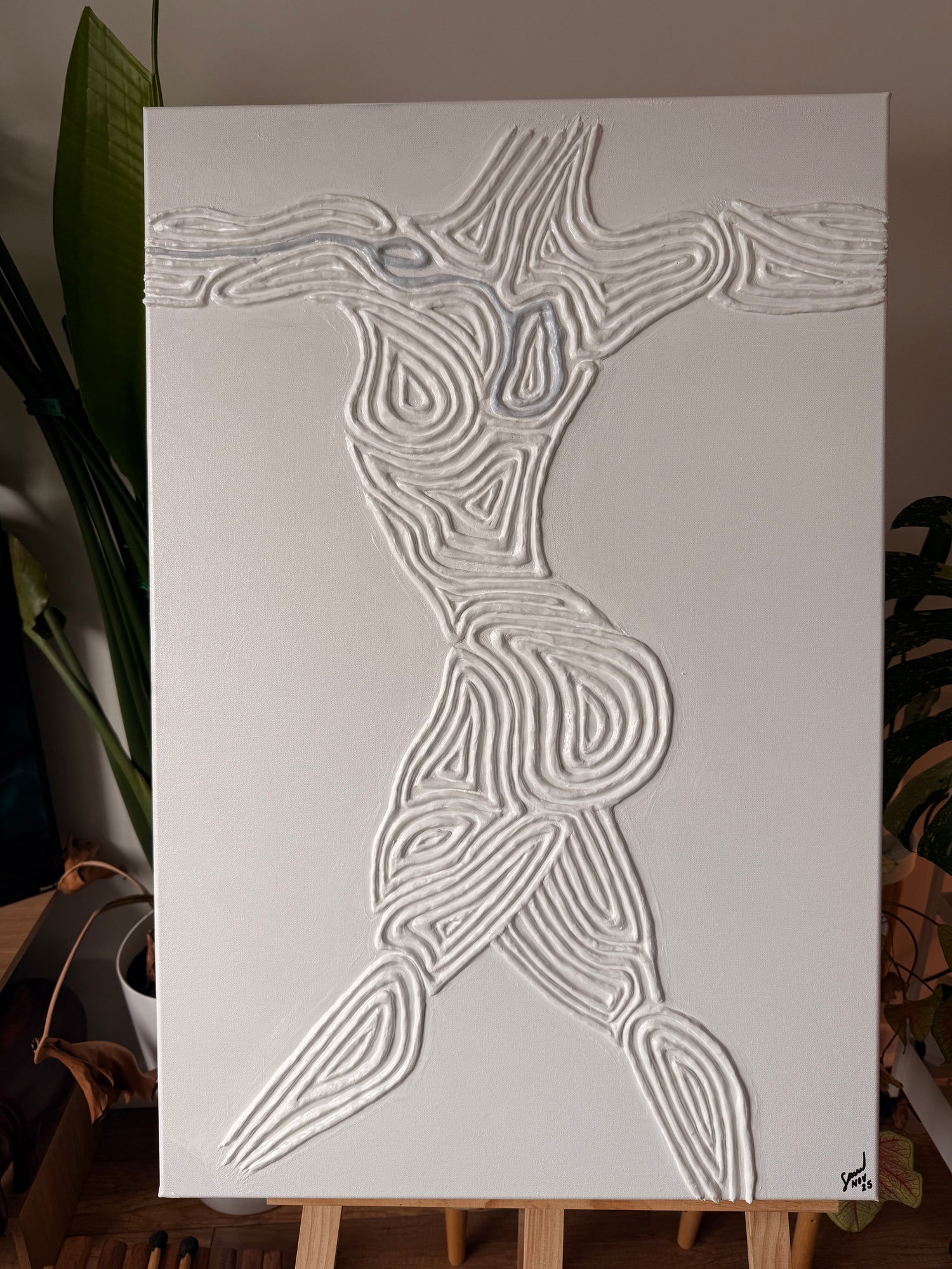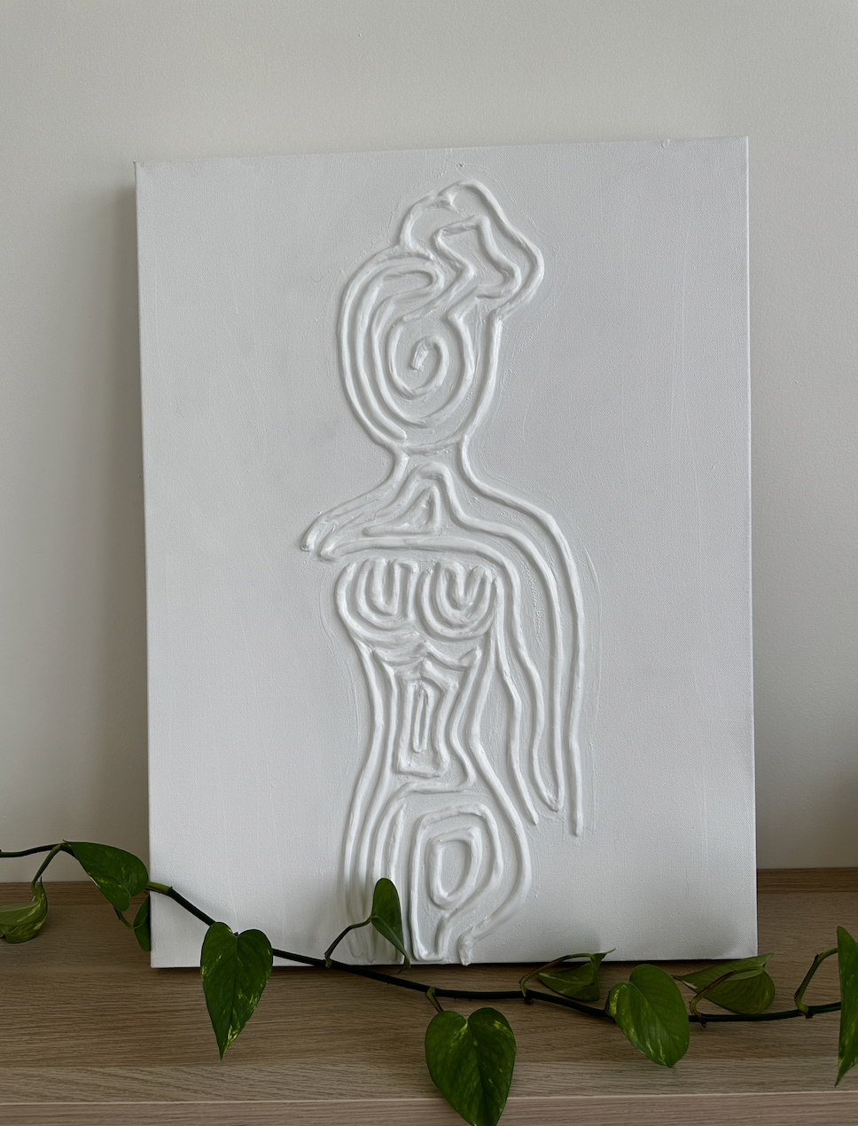 A feminine silhouette emerges through soft gesture that feels both vulnerable and assured. The form is stripped down to its essence, revealing a body held together by sincerity rather than complexity. There is tenderness in its simplicity, a reminder that strength can be subtle and that clarity often arrives in gentle shapes.